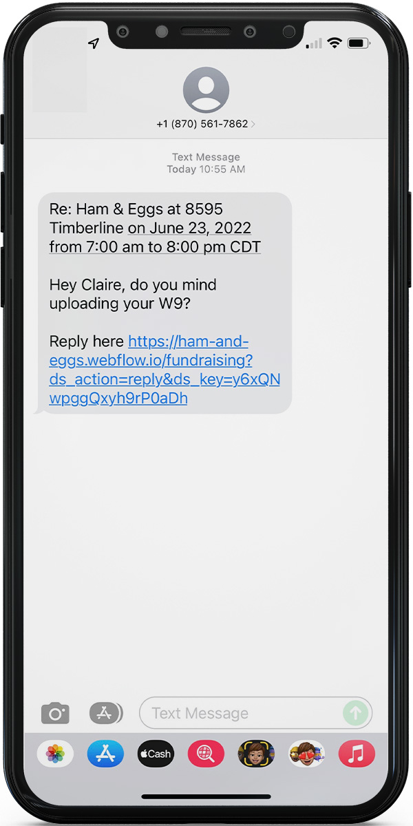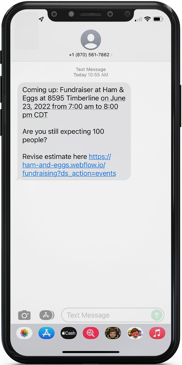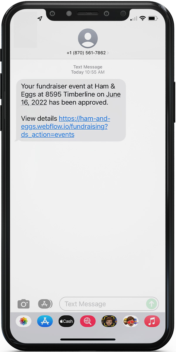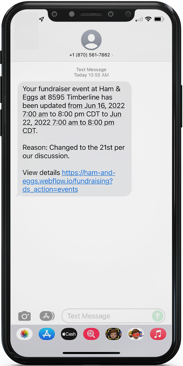 Automated SMS Messages Initial Request Approval Date Change Message Week of Reminder Day of Reminder Event Results Payment Sent
