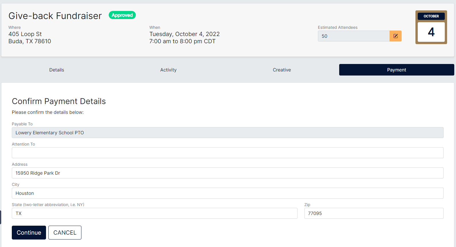 Can the donation be sent to another address? Yes, you can change the mailing address for the donation payment in the Payment section of your reservation. Please make sure the address can receive mail, otherwise the system will reject the address.