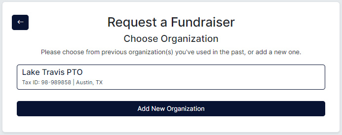 Your email address can be associated with multiple organizations so you can manage events on behalf of more than one org. Simply click the Add New Organization button when making a new request and it will be added to your account.